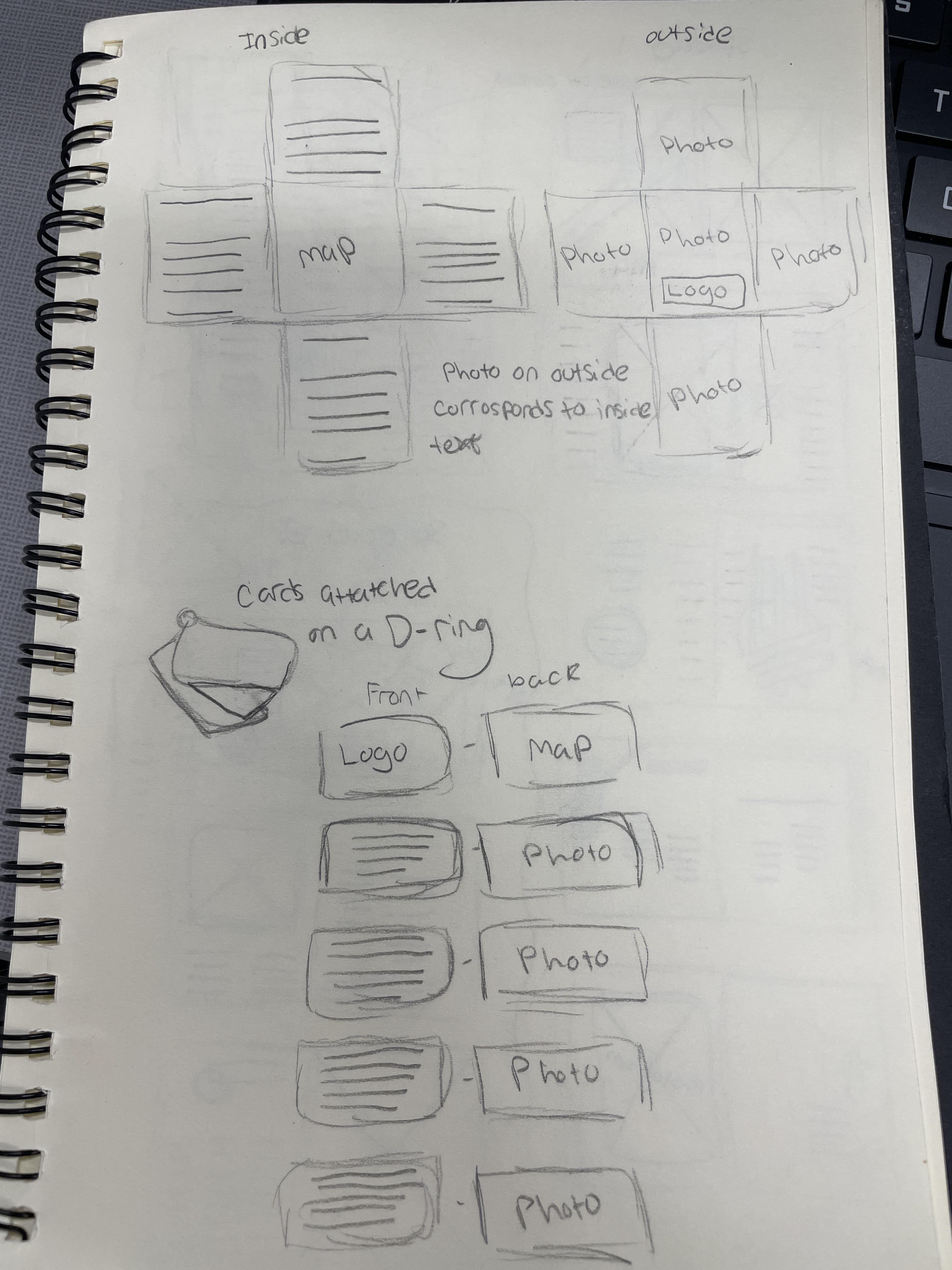 For my brochure, I did not want it to be something traditional that unfolds into a giant, inconvenient piece of paper. I had 2 ideas, one that is in a small square and flips out into pieces, or multiple small cards being held together with a ring.