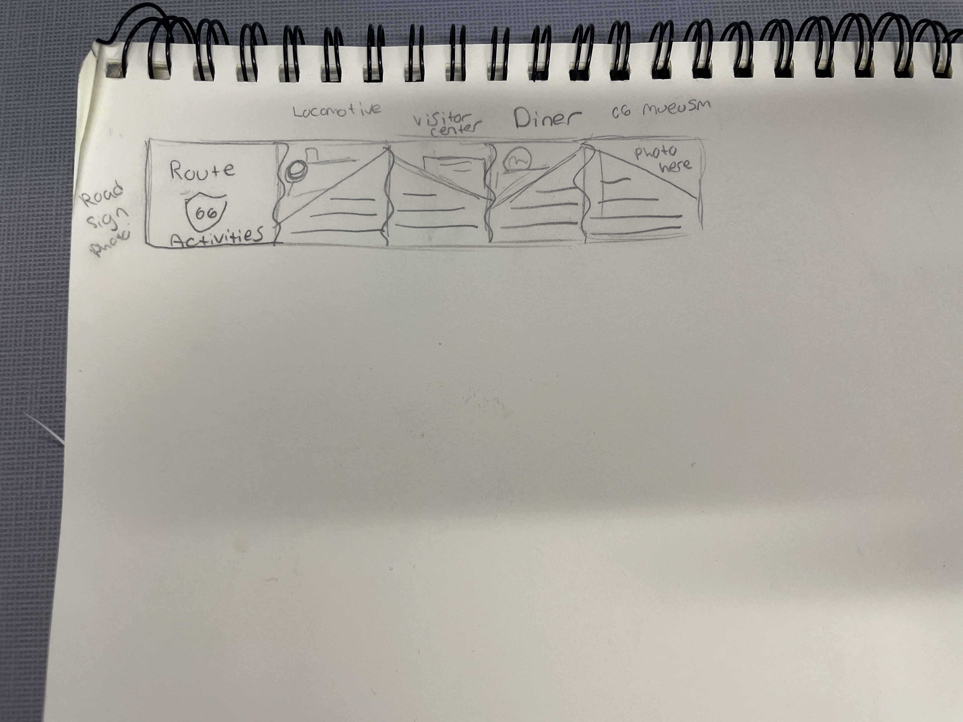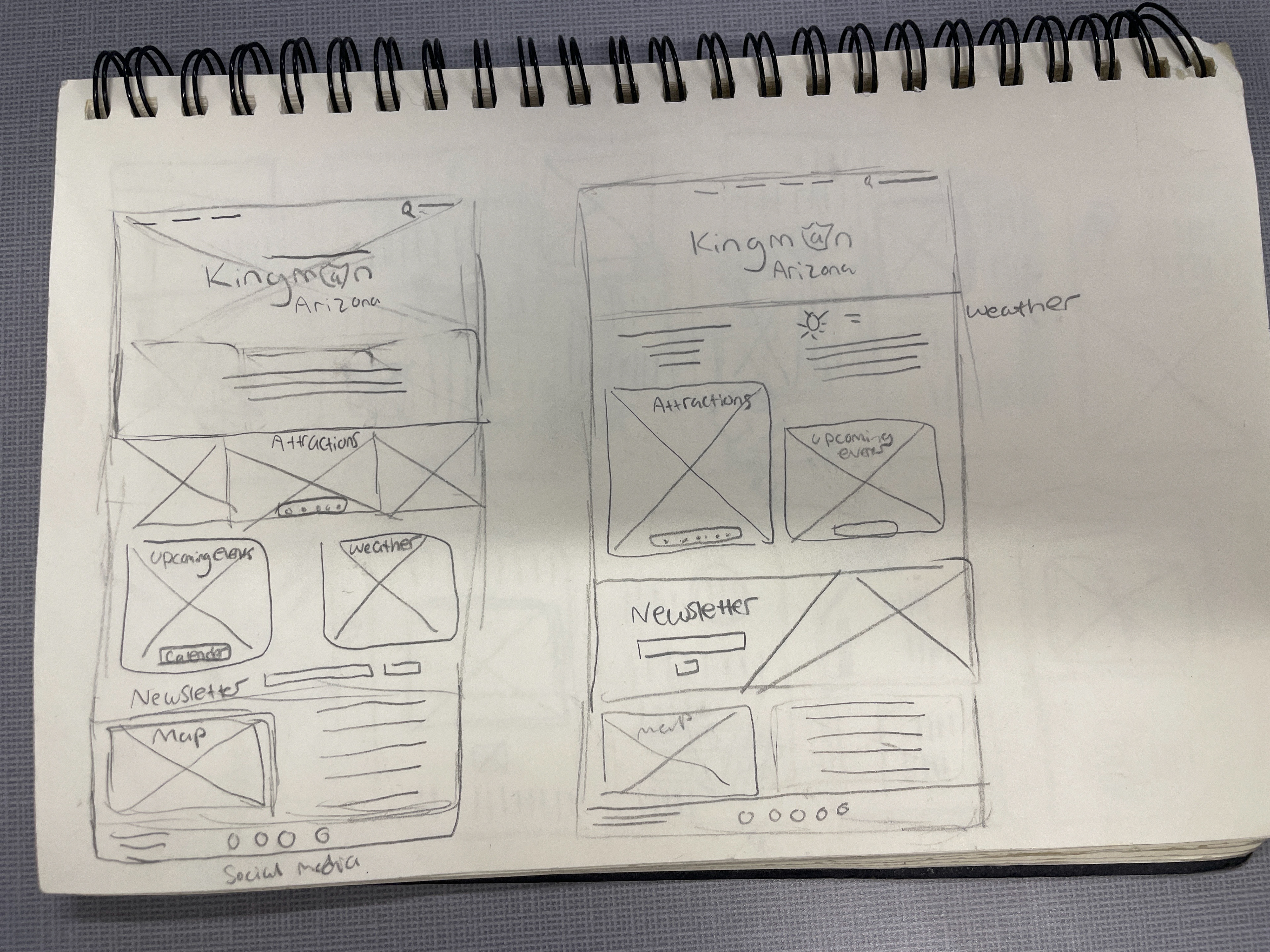 I kept my website wireframes simple, just blocking out the basic layout and what each section would be.