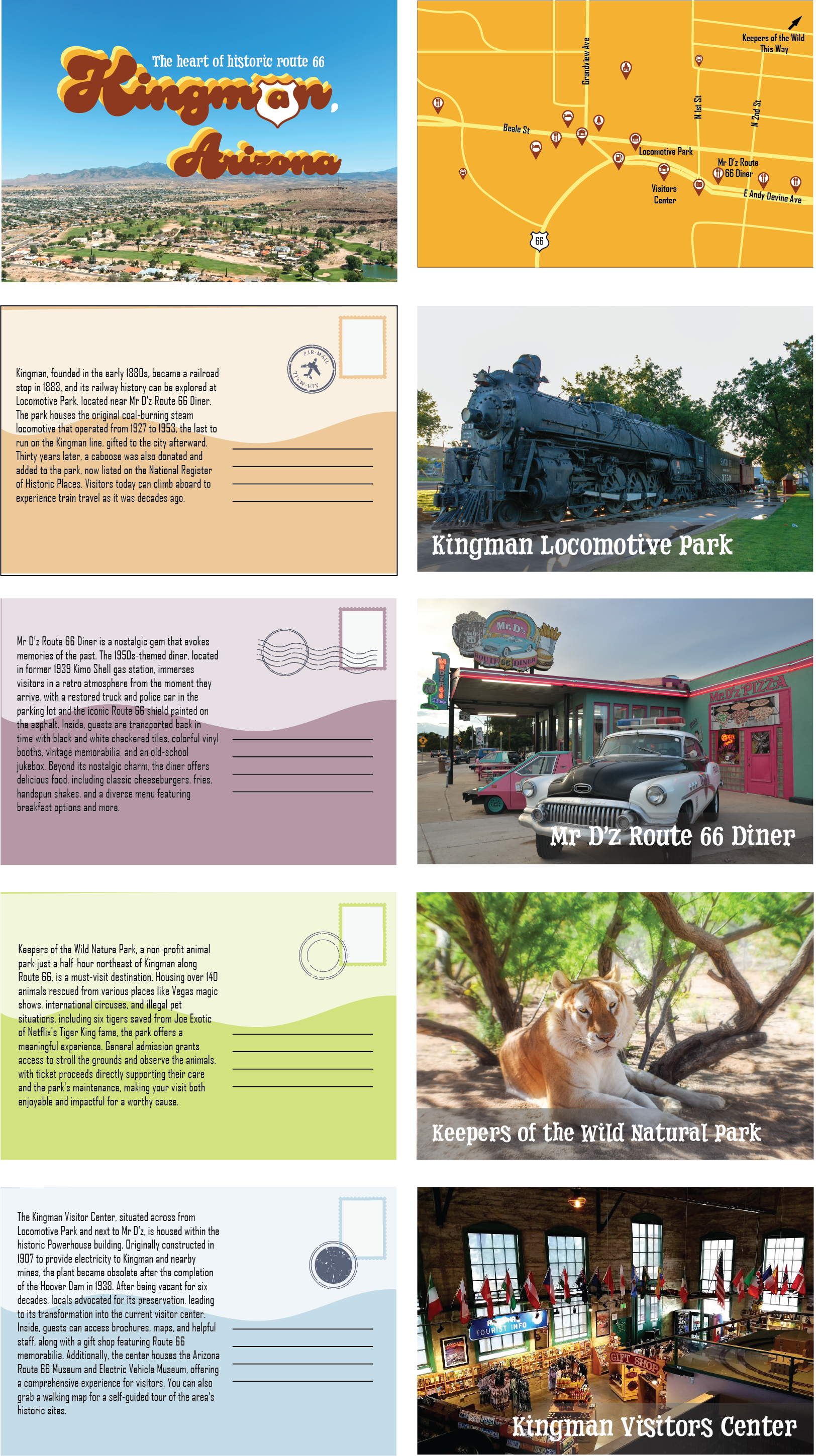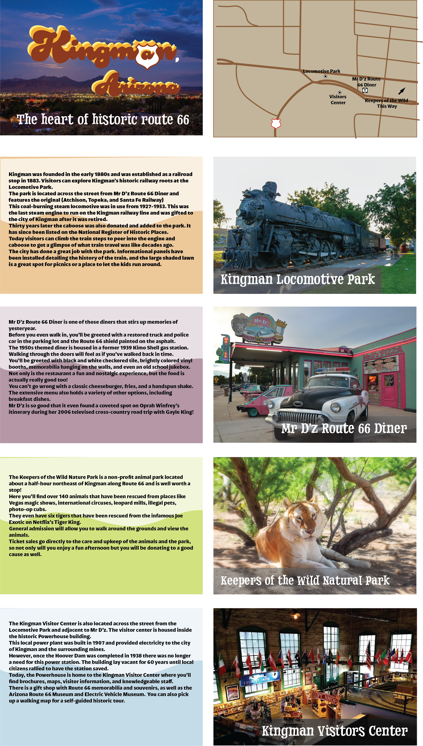 This school project is about creating a campaign for a city of your choice. It must include a logo, brochure, website, Instagram posts, and 3D touchpoints. I chose the city of Kingman, which is a medium-sized city in Arizona.